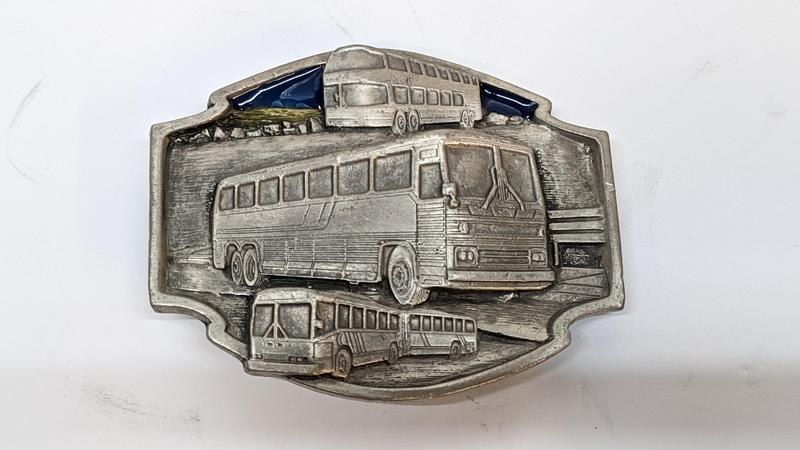 I’m not much of a belt buckle guy but this looks like it’s a good weight and it has a blue sky and not one but three buses on it. What more could a bus-lover ask for? This sold buck for a buck. I thought I might get more than that for this for a 1989 belt buckle but so it goes.